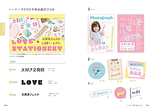 見出し・本文・キャプションなど用途別の文字設定も学べます。実際のデザイン例とともに「なぜこの配置が読みやすいのか?」が視覚的に理解できるため、初心者でも感覚だけに頼らず学べます。バナーやLPの文字デザインにもすぐに活かせる実践的な内容です。